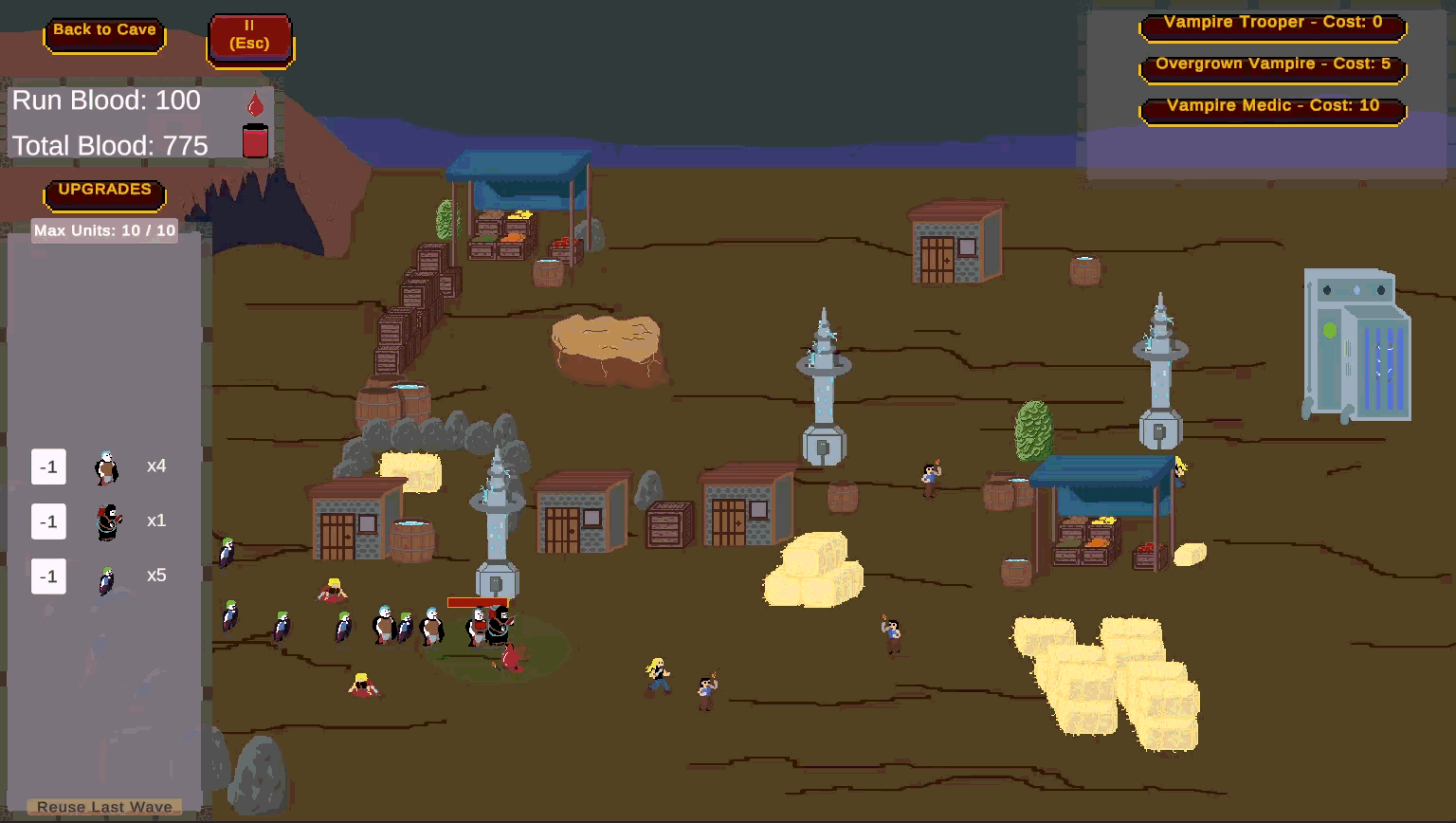 Humans have stolen your lands and fortified their towns with deadly towers. Build your army, unlock new vampire units, upgrade their abilities, and craft the perfect wave to break through human defenses. Crush villagers to harvest blood, expand your army, and bring down the human king to reclaim your domain.